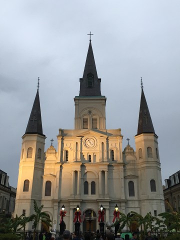 The cathedral was all dressed up for Christmas and looking fancy when we were in New Orleans, but even without the window dressing, Jackson Square is a fun place to be. Live music, carriage rides, artwork and performance artists all have their place around this famous part of the French Quarter. We sat on the steps overlooking the square watching acrobats tell jokes and perform tricks in the sunshine. Either side of the cathedral are the museums of The Presbytere and The Cabildo (both of which looked interesting but we missed out on seeing due to the bank holiday and Monday closures).