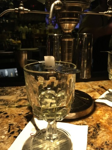SoBou is located in the W Hotel French Quarter (it has it’s own entrance though), and is a gorgeous restaurant and bar. They are one of a handful of bars that serve the traditional absinthe drip that we wanted to try. Cold water is dripped slowly onto a sugar cube, balanced over a glass of absinthe, and when the sugar cube is dissolved you can stir the glass and sip the absinthe. It was entertainment and libation in one and was a lot of fun to experience! The bar and wait staff were wonderful and the menu looked fabulous. I would love to come back here again and try some other items like the yellowfin tuna cones!