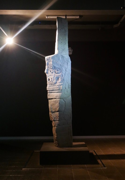 One of the most stunning pieces is the Lanzón. It’s a very tall piece of carved stone, almost completely intact (aside from a top section), and it is located inside the original stone temple from 1200BC. You can see it through glass at the site, but no pictures, however there is an exact replica in the museum if you want to study the carvings for longer or see it all the way around.