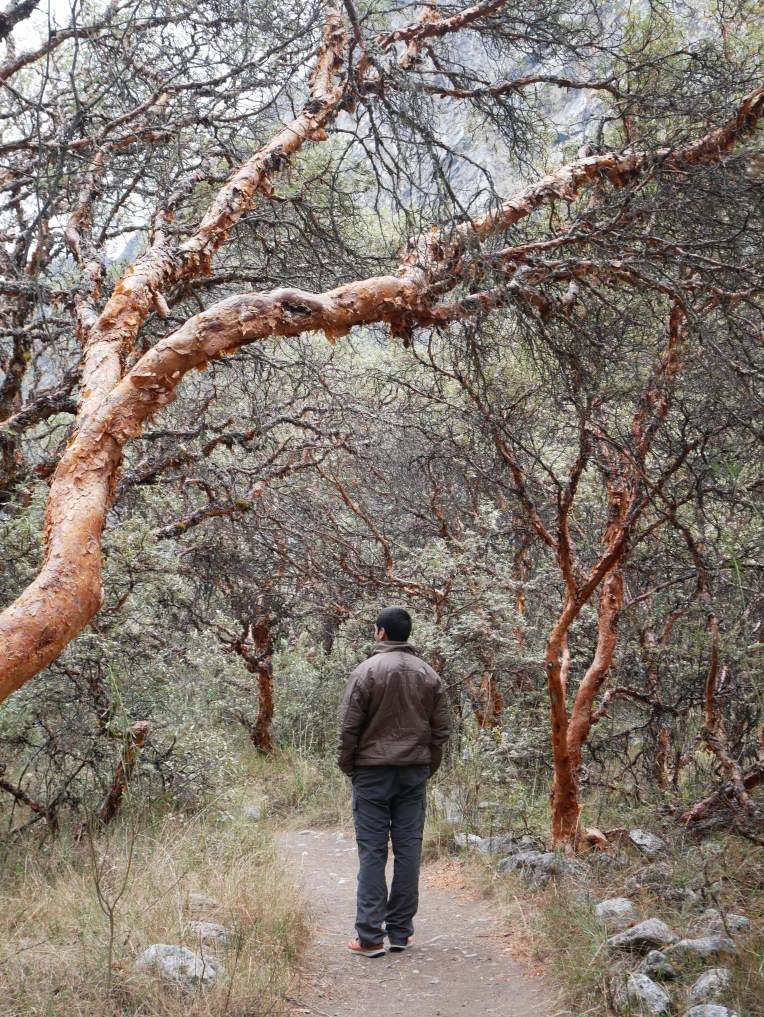 At the entrance to Chinancocha, there is a little bridge over the river/stream that leads to a woodland area. The area is beautiful and runs alongside the lake and is made up of lots more of those unique trees.