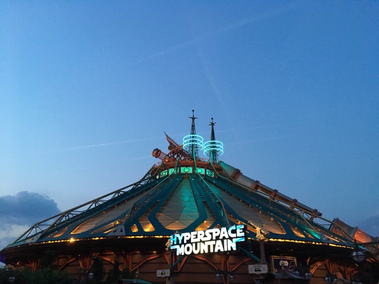 Space Mountain has been re-themed to be Star Wars related – Hyperspace Mountain – , so the outside reflects the original steam punk futuristic style, where the riders are shot out of a kind of a canon at the start (see photo above), whereas the ride itself is very much modern sci-fi. Evade blaster fire and TIE fighters to help the Rebel Alliance defeat the Empire all while listening to the soundtrack and hurtling through the dark! If you fancy more Star Wars you can definitely meet Darth Vader, like I did, and then ride Star Tours.