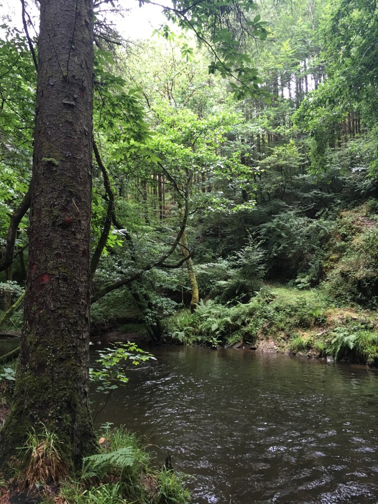 There’s a little area of woodland which I believe is called Stara Woods and through it runs the River Lynher. It’s a gorgeous spot to take a stroll, or walk your dogs, as you are completely surrounded by woodland and ferns. If it’s been raining, like it did with us, I’d recommend putting your wellies on, just in case!