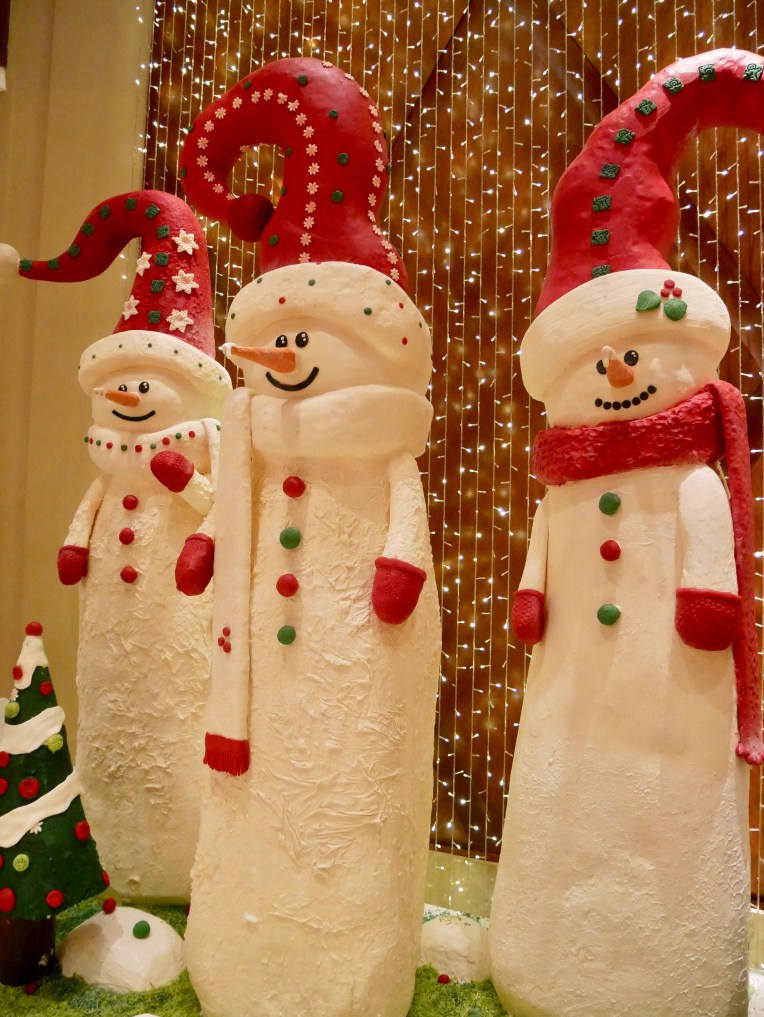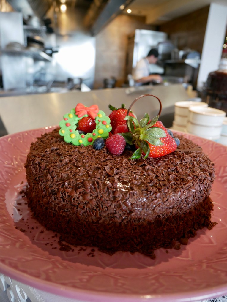 The decorations were lovely, and they even had a huge sculpture made completely from chocolate at the entrance. But, not only was the restaurant all decorated for the holidays, but so were all the desserts (yes please to Christmas profiteroles). Super festive!