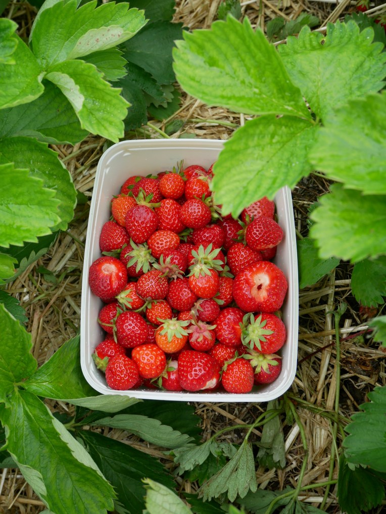 I went last week – luckily just in time, as Lidgate Farm in Isleham is due to close their strawberry fields for the season soon – and in under an hour we had managed to pick enough to generously fill five ice cream tubs. (If you want to visit Lidgate specifically, then keep an eye out here for strawberry availability updates and also when they have other fruits to pick too.)