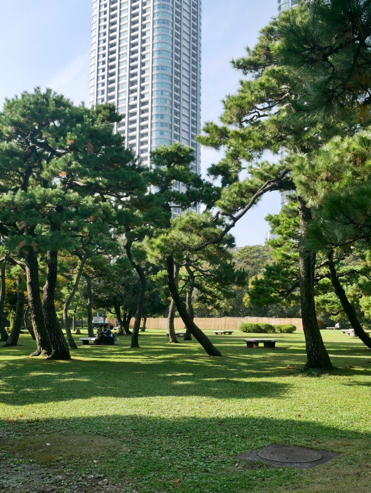 In some parks you can forget what lies outside its borders due to the sheer size of it, how tall the trees are, or even how much the foliage blocks out of sight. However, Hamarikyu feels like more of an oasis due to the towering structures that visibly surround it.