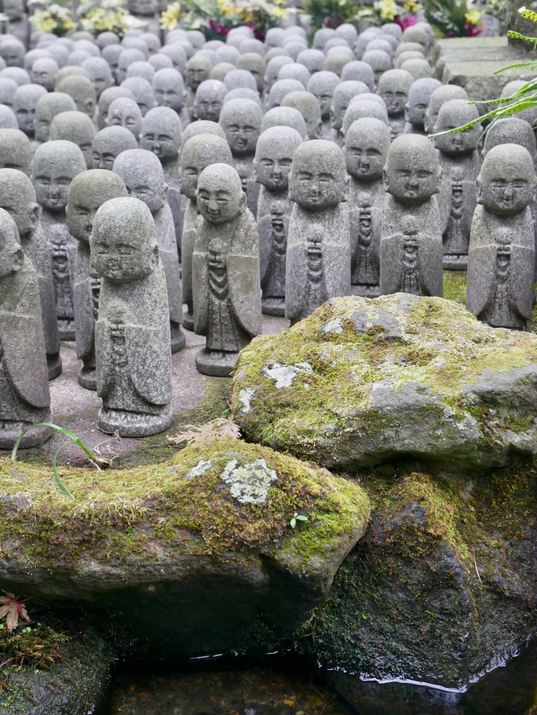 Jizo-do Hall, located up the stone stairs from the lower level, is surrounded by hundreds of Jizo statues. These little figures represent a deity who protects all children, even in the afterlife, including those who were miscarried. It was sad looking at a sea of these statues, wondering how many of them represented lost children, but actually I read that it can also be a comfort for the parents to know that their little one has someone in the afterlife taking care of them. The area surrounding the hall also has a lot of flowers and a little pond, making it a lovely place for people to come and pray.