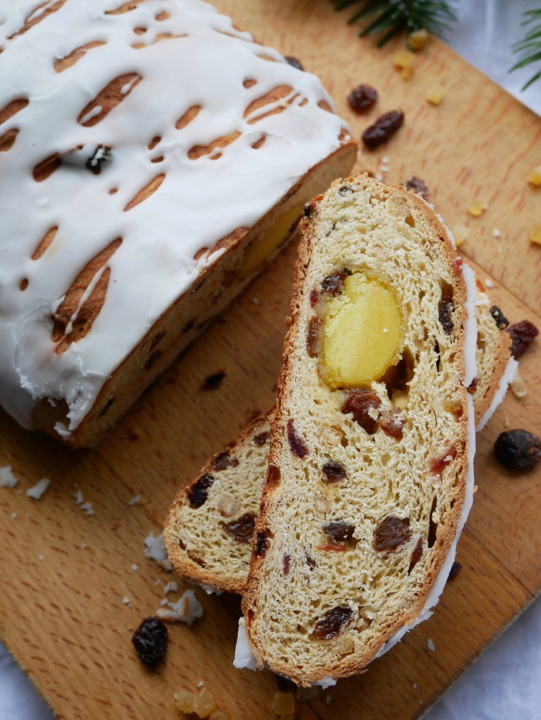 In parts of Europe, stollen appears in every household around Christmas time (I assume in other countries too!) and you can tell why. It’s essentially a fruit bread that originated in Germany many centuries ago, and is packed with dried fruits and zest and optionally filled with a roll of marzipan (why would you leave it out?) running through the middle and topped with icing sugar. Dried fruit and citrus zest/peel plays a big part in a lot of our Christmas recipes, with mince pies and Christmas pudding being the traditional centrepieces, so stollen just makes the perfect festive companion.